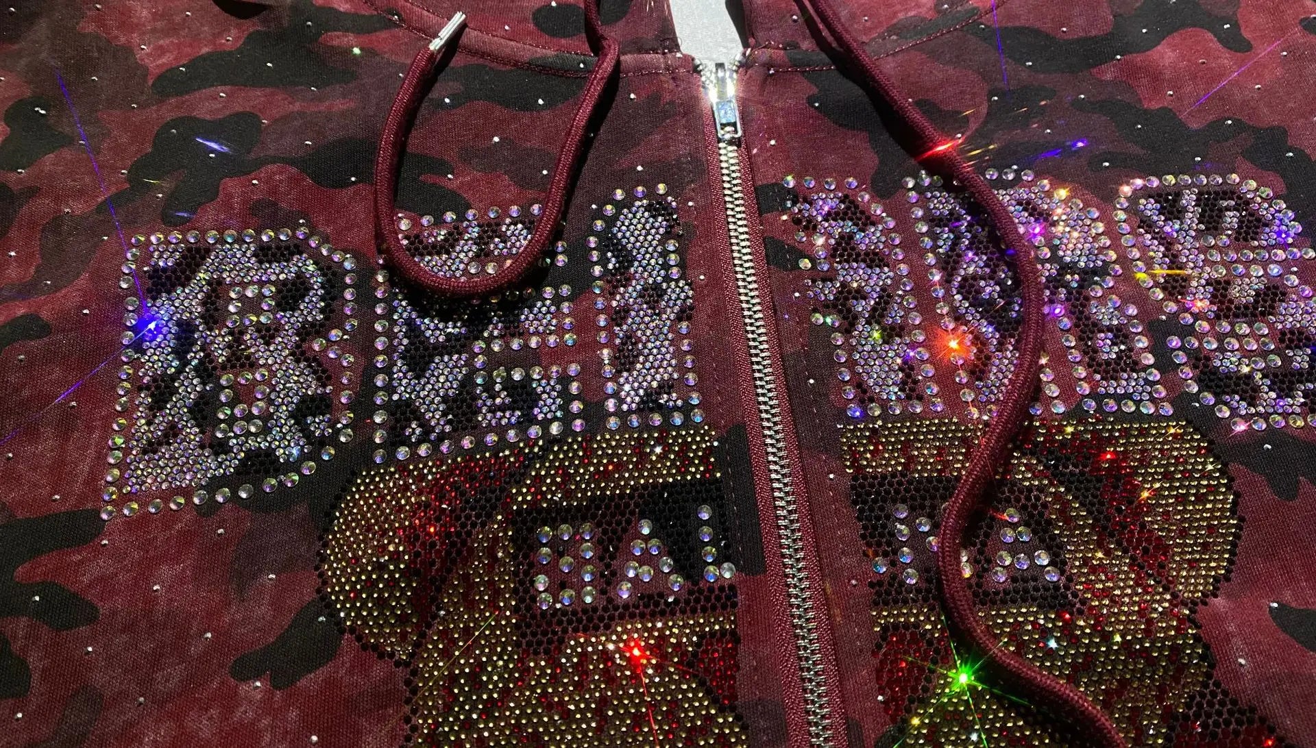 Stay stylish and comfortable with this Cartoon Bear Diamonds 2-Piece Set for women. Featuring an autumn camouflage hooded zipper cardigan top and matching pants, this casual tracksuit combines playful design with cozy functionality.