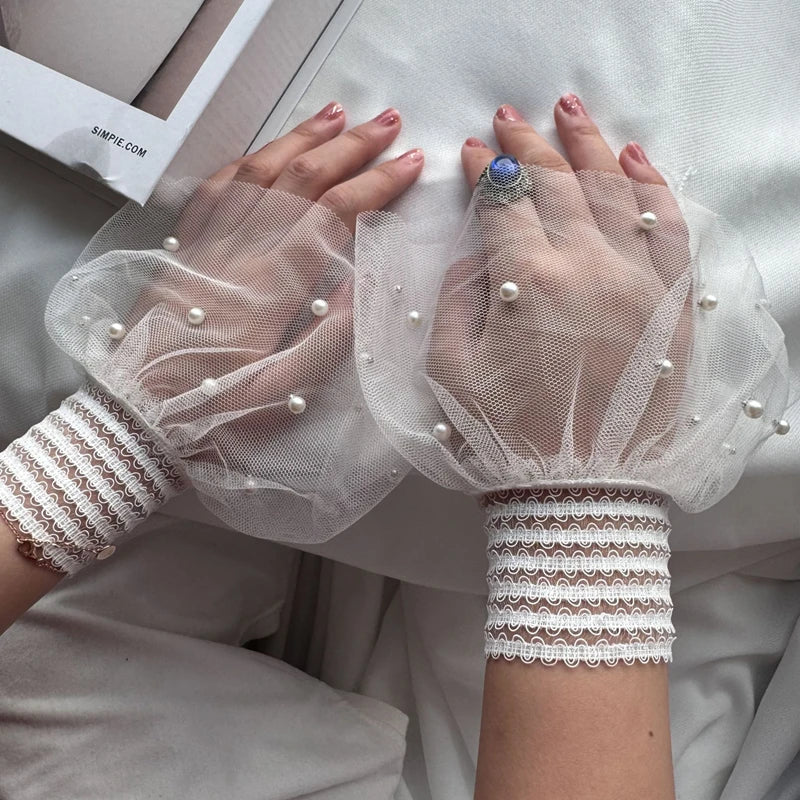 Detachable Lace Short Pearl Fake Flared Sleeves