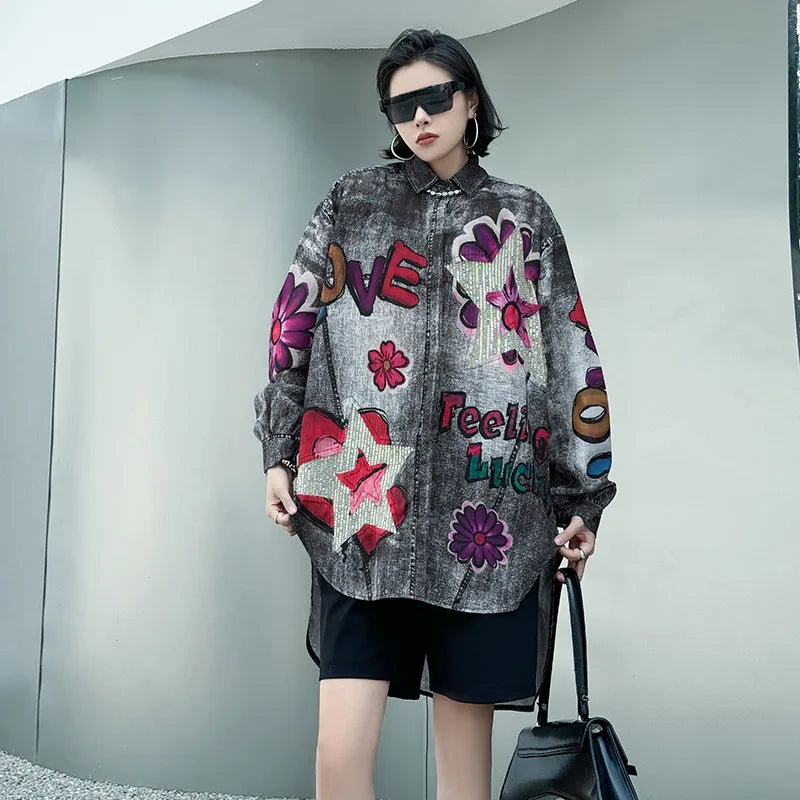 Add a touch of vintage flair with this Retro Women’s Floral Sequin Tie-Dye Chiffon Blouse. Featuring contrast color floral prints, irregular star rhinestone embellishments, and a lightweight chiffon fabric, this blouse combines playful charm with elegant style.