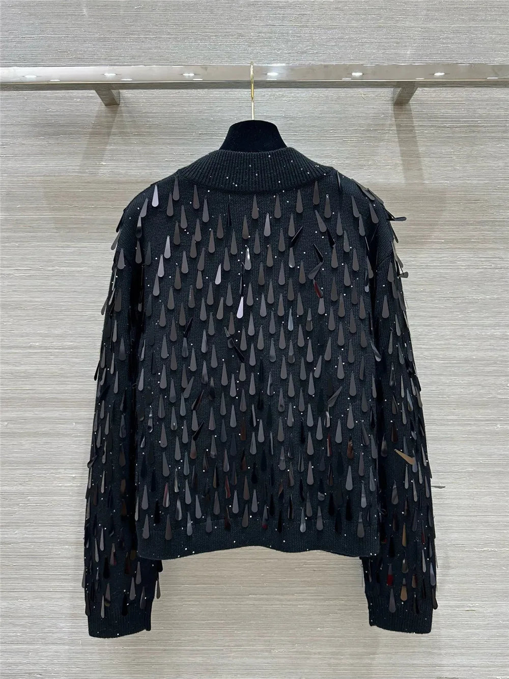 Elegant and refined, this Women’s Wool Suit 2-Piece Set features a V-neck knitted cardigan and a high-waist half skirt. The intricate heavy embroidery and sparkling water-drop sequin design add a touch of luxury and sophistication. Perfect for professional events, evening gatherings, or any occasion where timeless style meets modern elegance.