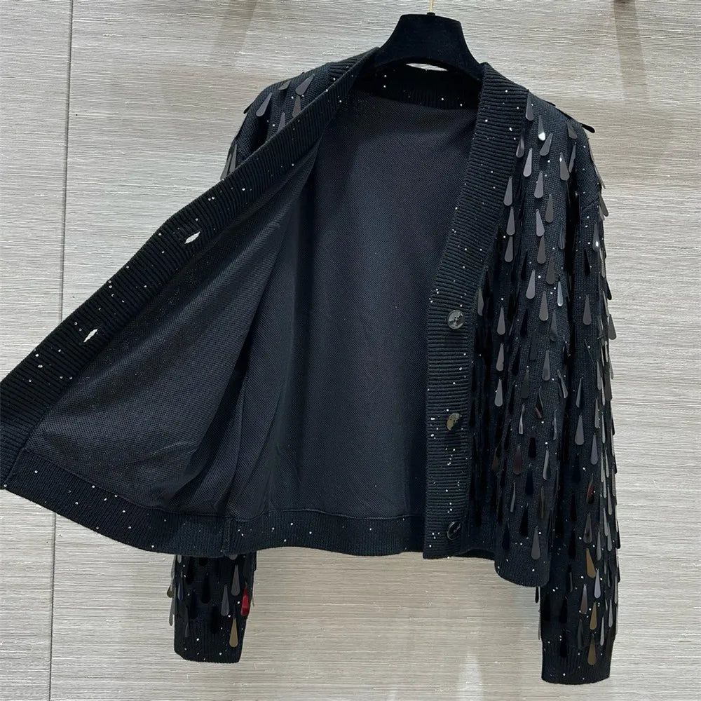Women's Wool V-Neck Knitted Water Drop Sequins 2 Piece Set
